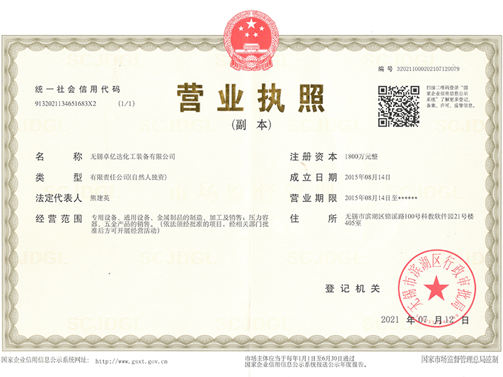 無(wú)錫卓?jī)|達(dá)化工裝備有限公司 質(zhì)量合格、誠(chéng)信經(jīng)營(yíng)、互惠互利、真誠(chéng)相待